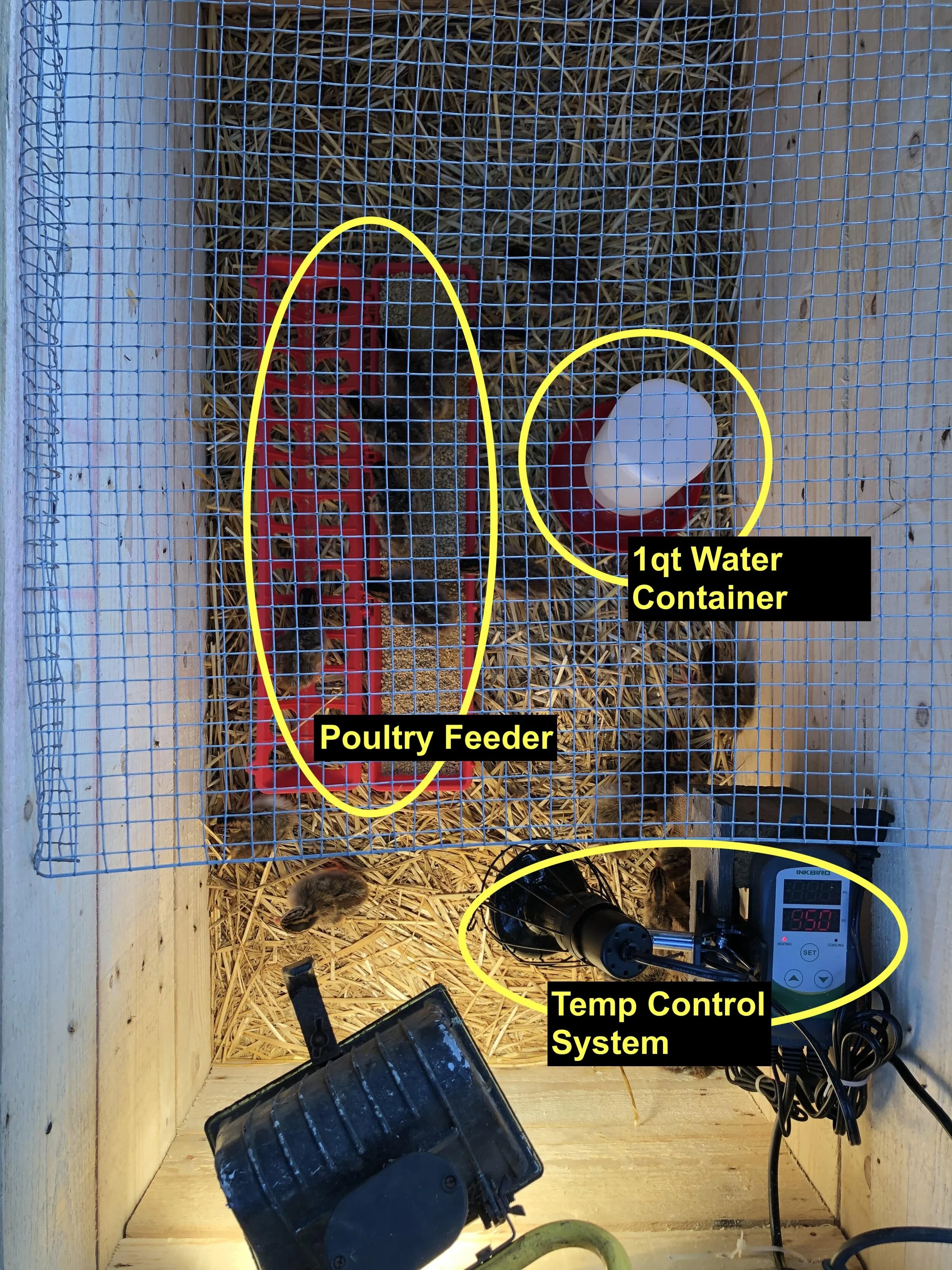 One last thing: bird brooders are notorious for starting fires. The heat lamp and straw is a bad combination. Please try to keep some distance between your heat lamp and the floor of your box. If you choose to keep your box outside and a safe distance from your home or barn, make sure to add a breathable lid to keep the birds safe from predators.